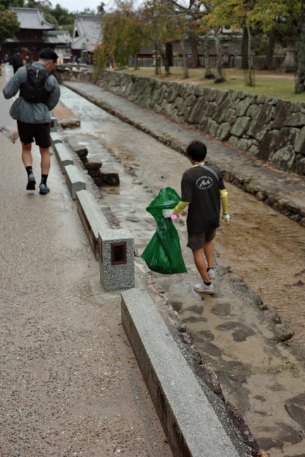 翌朝、宮島では「プロギング」というゴミ拾いイベントが行われました。