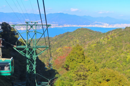 秋の弥山の最大の魅力は、なんといっても紅葉です!特に、ロープウエーの乗り場へと続く「紅葉谷公園」は、その名の通りカエデやモミジの木々が一斉に色づき、まるで燃えるような赤や黄色のトンネルに。この中を歩くハイキングは、うっとりするほど幻想的な世界に浸れますよ。もちろん、登山道の途中や山頂からも、色鮮やかな紅葉と瀬戸内海の青のコントラストが楽しめます。